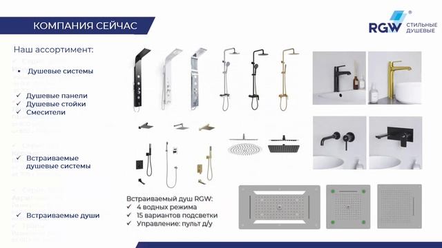Компания "RGW - Стильные душевые" производит и продает душевые ограждения, душевые кабины, шторки на ванну, поддоны и душевые системы, а также всё необходимое для организации комфортного, стильного и функционального пространства в ванной комнате. Собственное производство по немецким технологиям и строгое соблюдение стандартов качества позволяет нам создавать технологичные и долговечные конструкции сроком эксплуатации от 15 лет. А наша творческая команда непрерывно следит за трендами и воплощает самые сложные идеи в актуальных дизайнерских концепциях. За 25 лет на рынке мы представили свою продукцию RGW во всех регионах России и странах СНГ и можем предлагать клиентам и партнерам самые выгодные условия сотрудничества с расценками от производителя. Получить консультацию, приобрести готовую продукцию или обратиться за разработкой индивидуального решения любого уровня сложности вы можете через сайт: https://rgw-magazin.ru/