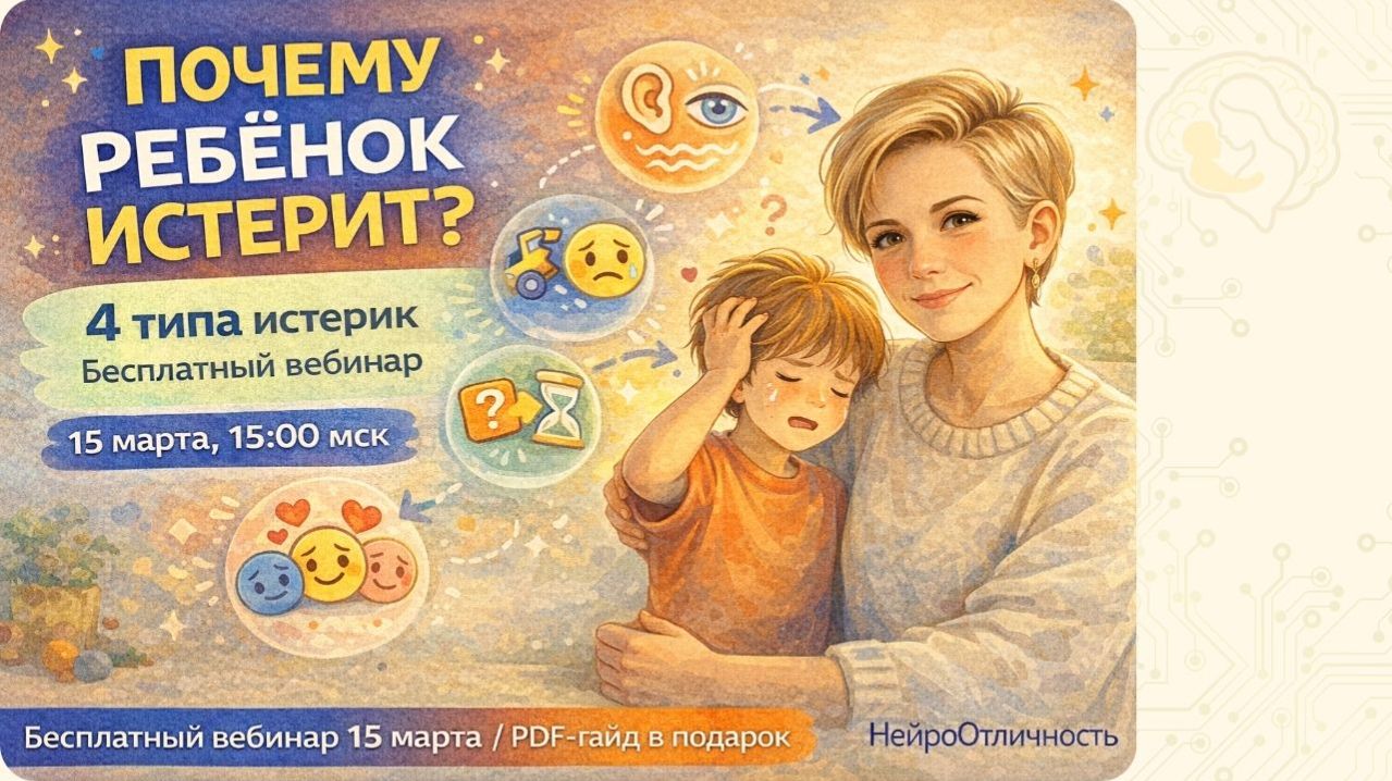 Если вы часто сталкиваетесь с истериками и эмоциональными срывами у своего ребёнка — вы знаете, как это выматывает. Иногда кажется, что всё, что вы делаете, не работает. Приглашаем вас на бесплатный вебинар «Почему нейроотличные дети устраивают истерики – и что на самом деле происходит в их мозге», как продолжение темы февральского вебинара: "Почему ребёнок истерит и перестаёт вас слышать". На вебинаре разберём: ✔️ Что на самом деле происходит в мозге ребёнка во время истерики ✔️ Почему одни и те же методы не работают в разных ситуациях ✔️ Чего делать НЕ стоит в момент истерики (и почему) ✔️ Как уменьшить количество истерик системно, а не тушить каждый раз Что вы получите: ✅ практические инструменты для снижения частоты истерик, ✅ что делать в моменте — простые пошаговые действия под каждый тип ✅ чек-лист типов истерик и «Что делать в моменте» (на самом вебинаре). 🎁 Подарок после регистрации: PDF-гайд «5 первых шагов, чтобы снизить частоту истерик дома» Присоединяйтесь и научитесь поддерживать ребёнка, а не бороться с ним. 👉 Ссылка на регистрацию: https://vebinar.lpxl.ru/mozg_isteriki?utm_source=rutube 🗓️ Вебинар 15 марта, 15:00 мск
