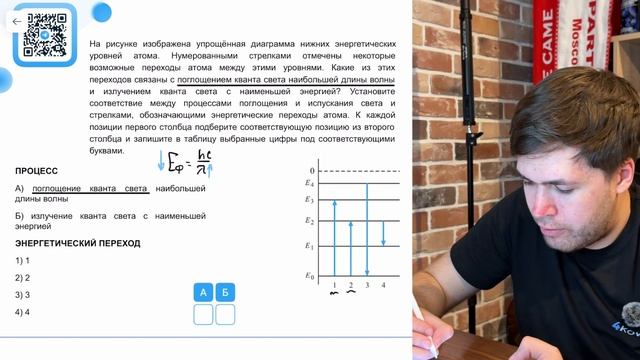 На рисунке изображена упрощённая диаграмма нижних энергетических уровней атома. Нумерованными - №