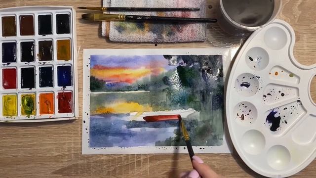 Как нарисовать летний вечер карандашом и акварелью начинающим | Рисунок для детей
