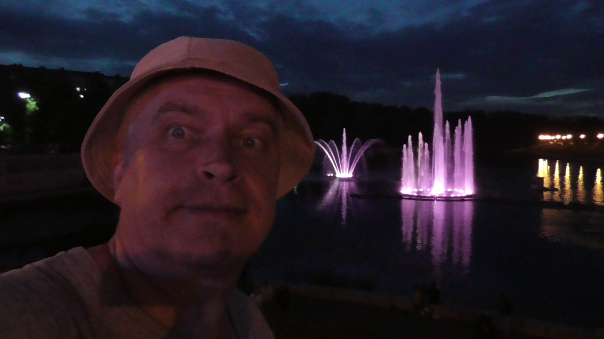 Я вечером. Вечерний фонтан на реке