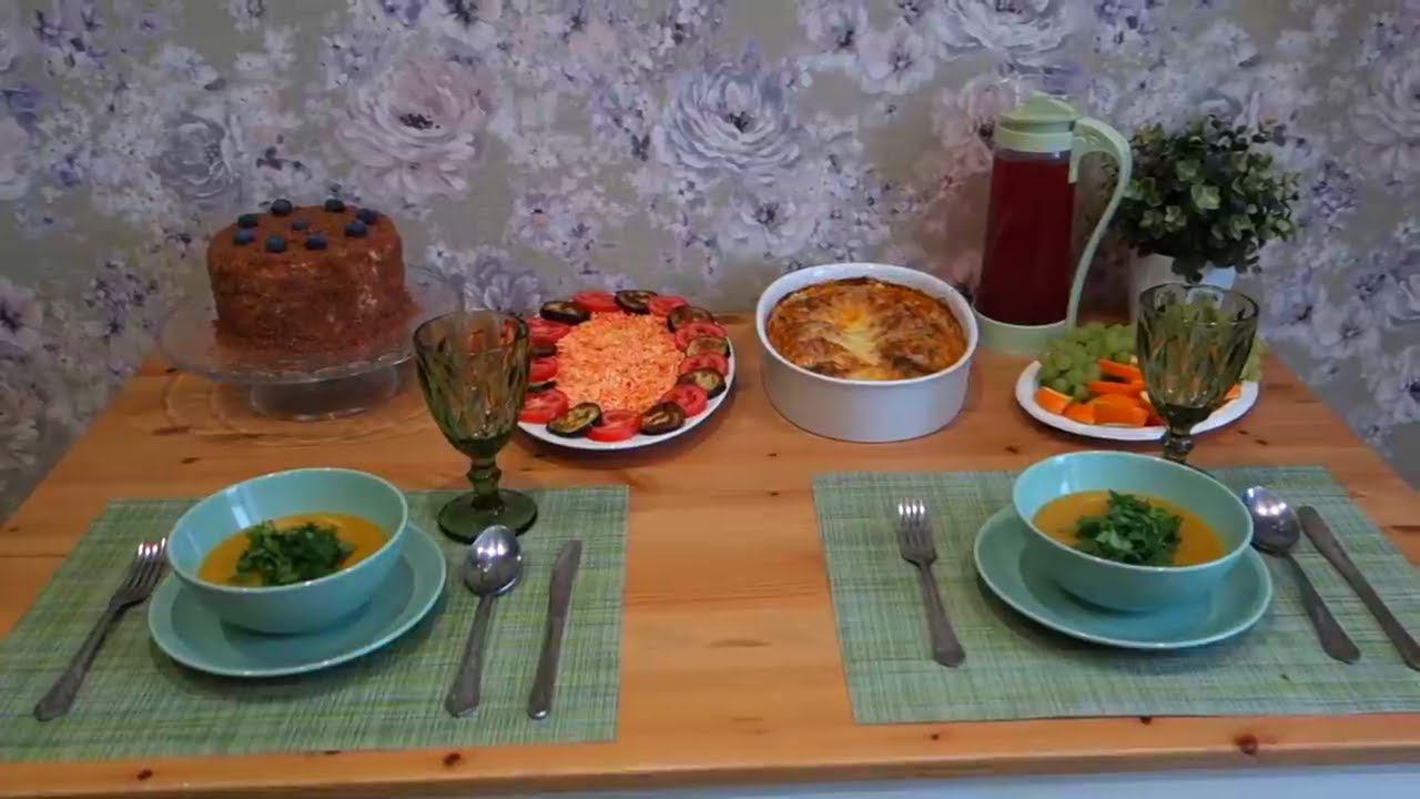 Очень вкусное и простое меню, вашей семье понравится такой обед или ужин!!! Торт: Сахар 200г Яйцо 2 шт Мука 260г Разрыхлитель 10г Молоко 130г Растительное масло 50г Какао 10г Кипяток 100мл Крем: Сливки 33% 200г Сахарная пудра 70-80г Творожный сыр 180-200г Котлеты: Фарш мясной 500г Капуста 300г Лук 1шт Морковь 1шт Специи Сливки (сметана) 250мл Томатный сок 250мл Сыр Запекать при 180-200* 50 минут, посыпать сыром и еще на 10 минут Салат: Морковь Чеснок Сыр Майонез/йогурт/сметана Баклажан 1 шт Томаты 2 шт Суп: Картофель 2шт Морковь 1-2 шт Лук 1шт Чечевица красная 200г Варить 20 мин. сделать пюре, добавить специи и варить еще 5 минут ************************************************************************************************* МОЙ ДЗЕН https://zen.yandex.ru/id/60886102449f9d5299226035?lang=ru ************************************************************************************** ☑️ ✍️ Подпишитесь на канал! И поставьте , мне будет приятно —————————————————————— Жмите на колокольчик, чтобы не пропустить новые видео ************************************************************************************** Я в Инстаграм https://www.instagram.com/i.voskresenskaya/ Я в контакте https://vk.com/id35633911 Моя группа в контакте https://vk.com/vanilla_nn ************************************************************************************** Для сотрудничества и рекламы https://vk.com/id35633911 *************************************************************************************** Ивановский текстиль и трикотаж по низким ценам на сайте grandstock.ru https://clck.ru/U8SiW Хотите получить скидку? Воспользуйтесь моим промокодом ZZPIC6GC3 и получите скидку 4% на весь заказ *************************************************************************************** Вы можете начать зарабатывать в Youtube на своих видео. Подключайтесь к партнерской программе. Вам будут платить независимо в какой стране вы живете. Любыми способами: PayPal, Webmoney, деньги на ваш банковский счет и т. д. Просто попробуйте. Вот Ссылка для Подачи Заявки: http://join.air.io/irinasweet ************************************************************************************** #иринавоскресенская