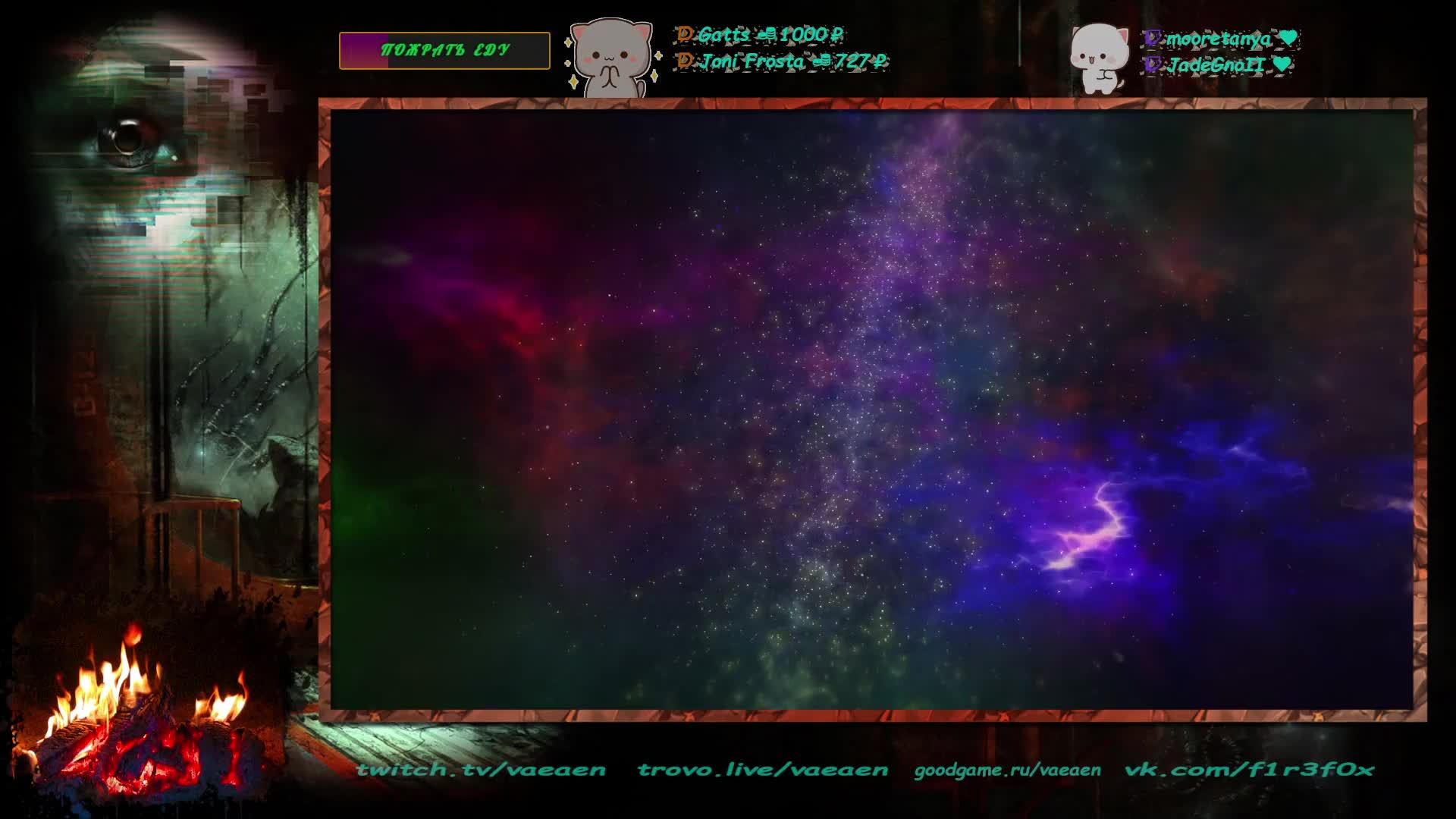 Если хотите поддержать меня как стримера - нажмите по данной ссылке https://www.donationalerts.com/r/f1r3f0x Donate for USD, EU all world - https://new.donatepay.ru/@vaeaen Во время стрима ваше сообщение появится на экране, и будет сопровождаться голосовым диктором. Поддержка на прямую: Сбер: 2202 2010 0629 1039 Тинькофф: 2200 7008 4677 0625 Основные каналы: Twitch: https://www.twitch.tv/vaeaen GoodGame: https://goodgame.ru/channel/Vaeaen/ Trovo: https://trovo.live/Vaeaen