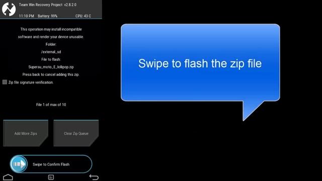Moto E lollipop root (supersu updated) This is a quick tutorial on how to root Motorola Moto E after updating to Android lollipop 5.0.2. excluding bootloader unlocking and TWRP recovery Supersu which is used for rooting Android kitkat 4.4.2 and 4.4.4 is no longer working.Here is the new supersu to root Moto E lollipop Moto E Bootloader unlocking & Installing TWRP recovery http://sh.st/s3R7m (wait for 5 seconds and skip the ad) Download supersu updated for Moto E lollipop http://sh.st/s3TCh 1. Put the downloaded supersu zip file in internal storage or SD card 2. Boot into TWRP recovery 3. Flash the zip file