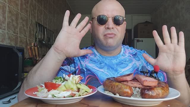 МУКБАНГ Купаты и колбаса обжаренная/ОБЖОР гречка и салат из овощей