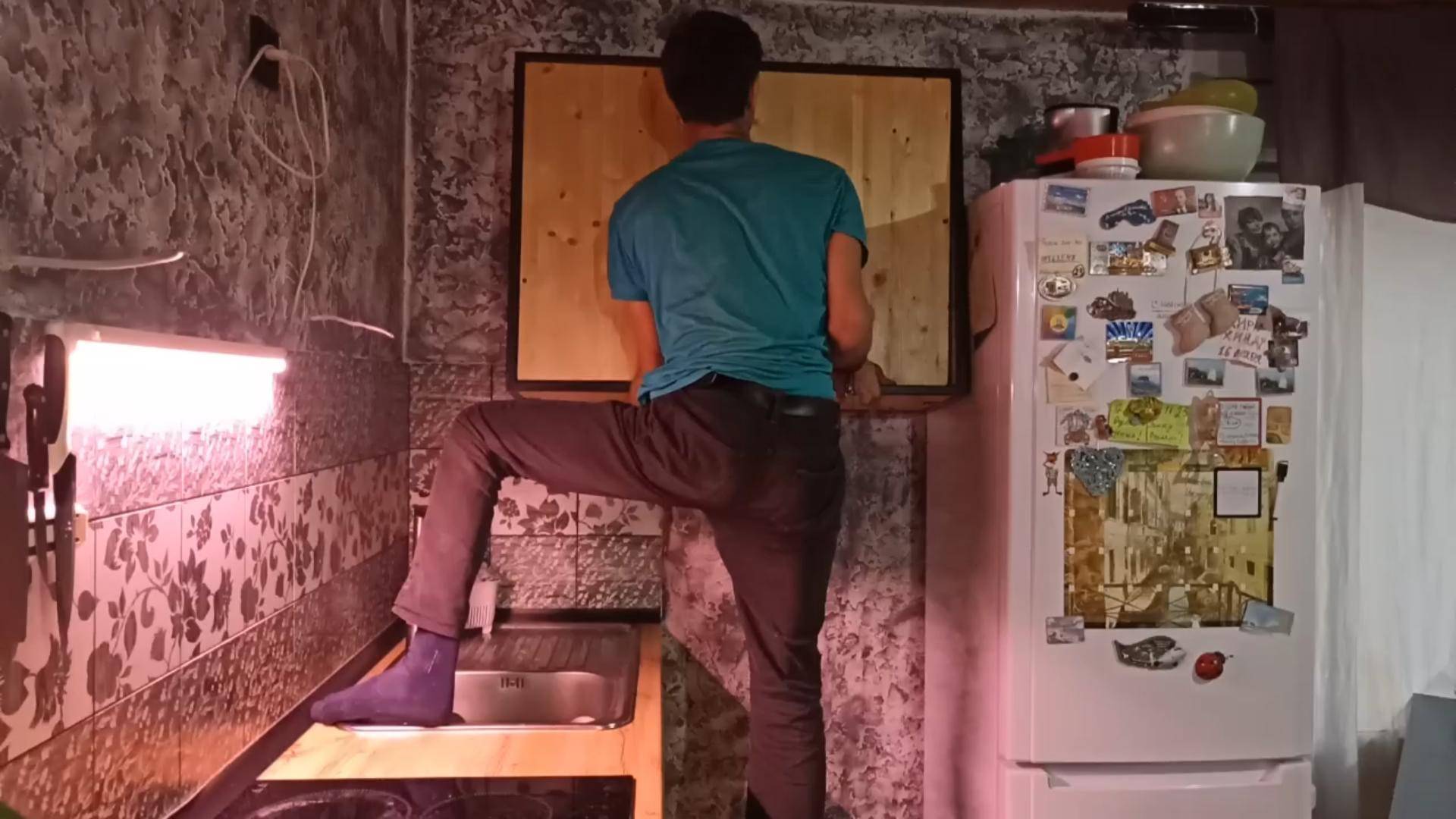 В частном доме скучать некогда//вот и кухонный шкаф на своем месте//
