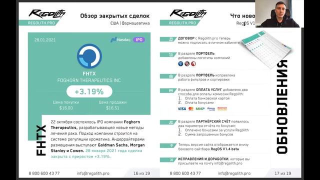 https://regolith.pro/upload/january_31_report.pdf - Отчёт за Январь 2021 https://regolith.pro/signup - Регистрация Внимание! Для регистрации обязательно укажите номер рекоменданта. Спросите его у человека, кто порекомендовал вам компанию Regolith. В ином случае, напиши нам. Regolith - Инвестиции в IPO, акции, ETF, SPAC. Торговля на фондовом рынке со средней доходностью 152,21% годовых. https://regolith.pro - Официальный сайт компании Regolith https://regolith.pro/upload/presentation.pdf - PDF-Презентация компании Regolith Свяжитесь нами любым удобным способом: 8 (800) 600-43-77 - Бесплатная линия по России info@regolith.pro - Напишите на Почту http://t.me/regolithpro - Напишите в Telegram http://wa.me/17607644082 - Напишите в WhatsApp