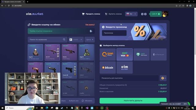 Сайт AIM.MARKET: https://aim.market/p/garant Бонус +5% к продаже при регистрации по ссылке и использовании промокода "GARANT" Мой сайт, где вы можете продать и обменять свои скины - https://csgohouse.ru Всем привет, у микрофона Гарант. Сегодня я расскажу вам о сайте аим маркет, который позволит вам продать скины с низкой комиссий и вывести на банковскую карту Мир, Visa и MasterCard. Вывод доступен на любой российский банк (Сбербанк, Тинькофф, Альфа-Банк, ВТБ и другие). Связь со мной: VK: https://vk.com/garantcis E-Mail: garantcsgo@yandex.ru