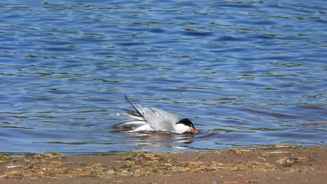 Речная Крачка купается, наблюдение птиц в Великом Новгороде 23 мая 2024