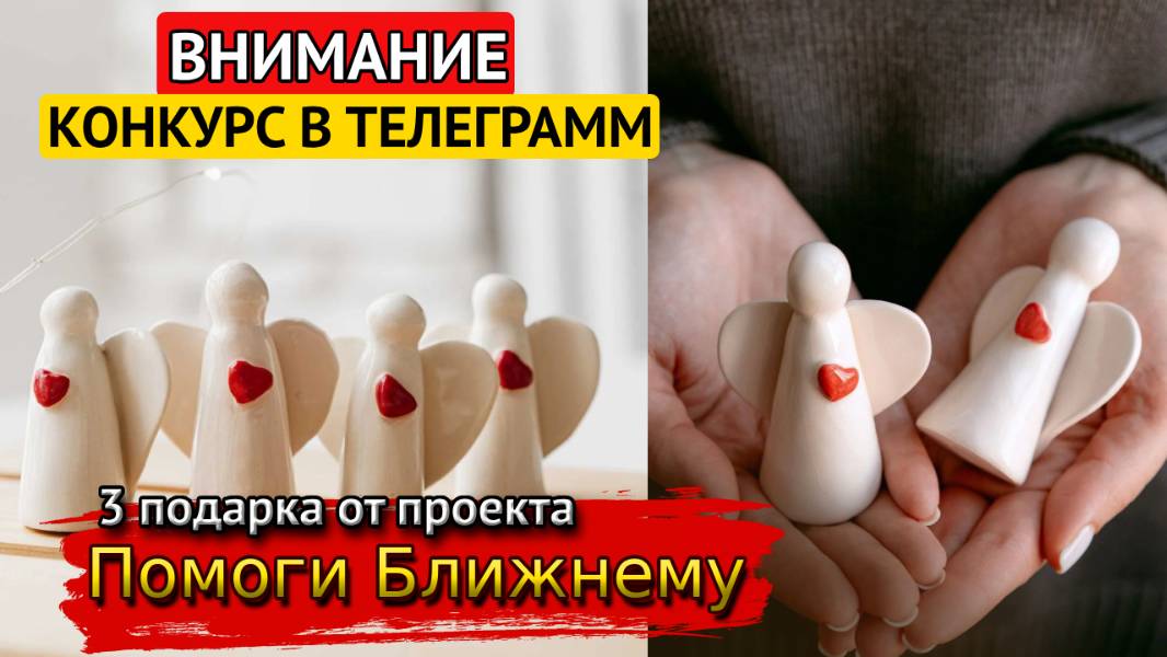 Конкурс в ТЕЛЕГРАММ , где каждый подарок — с душой! https://t.me/pomogiblizkomy Мы запускаем тёплый розыгрыш от проекта «Помоги Ближнему» — сообщества, где талантливые мастера с инвалидностью создают удивительные вещи своими руками. За каждым изделием — не просто ручной труд, а живая история человека, который преодолевает ограничения и творит с любовью. Призы: 1. Шопер ручной работы 2. Керамический ангел 3. Набор восковых свечей ручной работы Все три подарка — уникальные, и будут особенно ценны тем, кто любит вещи с настоящим смыслом. Условия участия: 1. Подписаться на наш канал Помоги Ближнему (https://t.me/pomogiblizkomy) 2. Нажать кнопку «Участвую» Итоги подведёт наш умный бот 1 июня, честно выбрав трёх счастливчиков. Присоединяйтесь — и, возможно, именно вы получите частичку света от наших мастеров! https://t.me/pomogiblizkomy