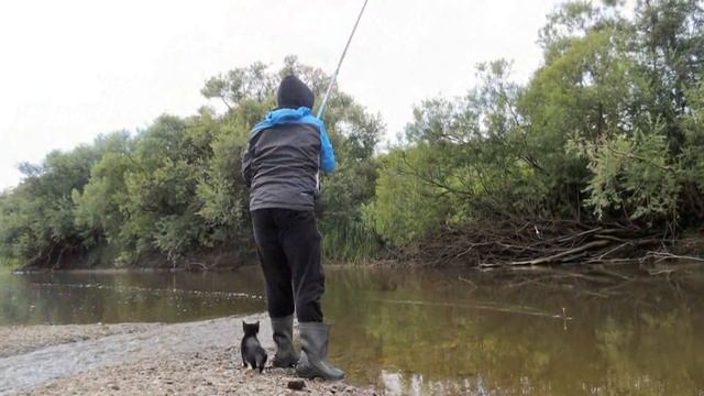 У реки на берегу, Захотелось вдруг коту Отобедать свежей рыбой, Вкусной, прямо не могу. Подошел он к рыбакам, Огляделся по бокам. Заприметил добряка, Рыбака - счастливчика! И задумал кот тогда, Рыбу сразу снять с крючка, Подошел он к человеку, Трется о два сапога... Тут рыбак поймал рыбешку, Рыбку в зубы кот, рычит... Поедает с головешки, Только хвост один торчит. Нас сомненья одолели - Не бросать же нам кота?! Подарили бабе Неле, Пусть зачтется доброта!