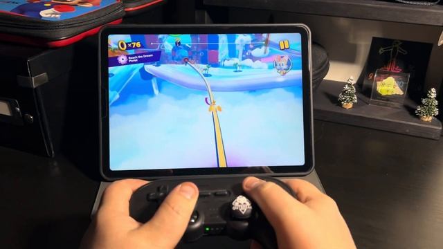 Playing Sonic Dream Team game from Apple Arcade on Apple IPad Air with 8 BitDo gamepad.