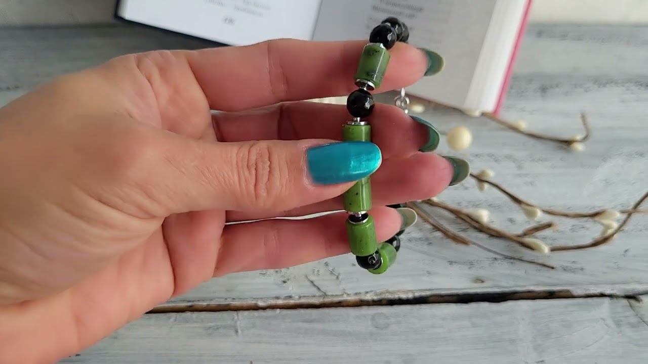 Браслет из нефрита, агата черного