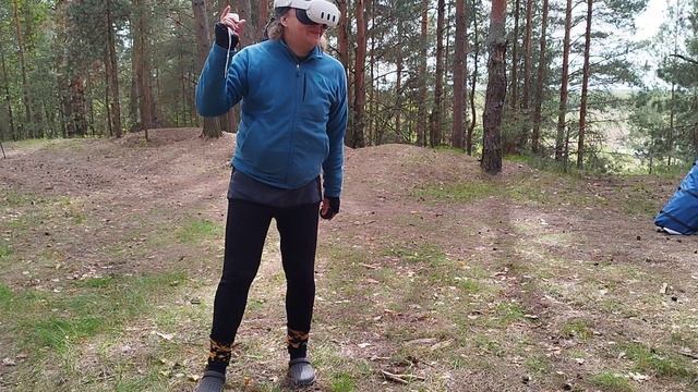 странный человек в лесу, шлем виртуальной реальности