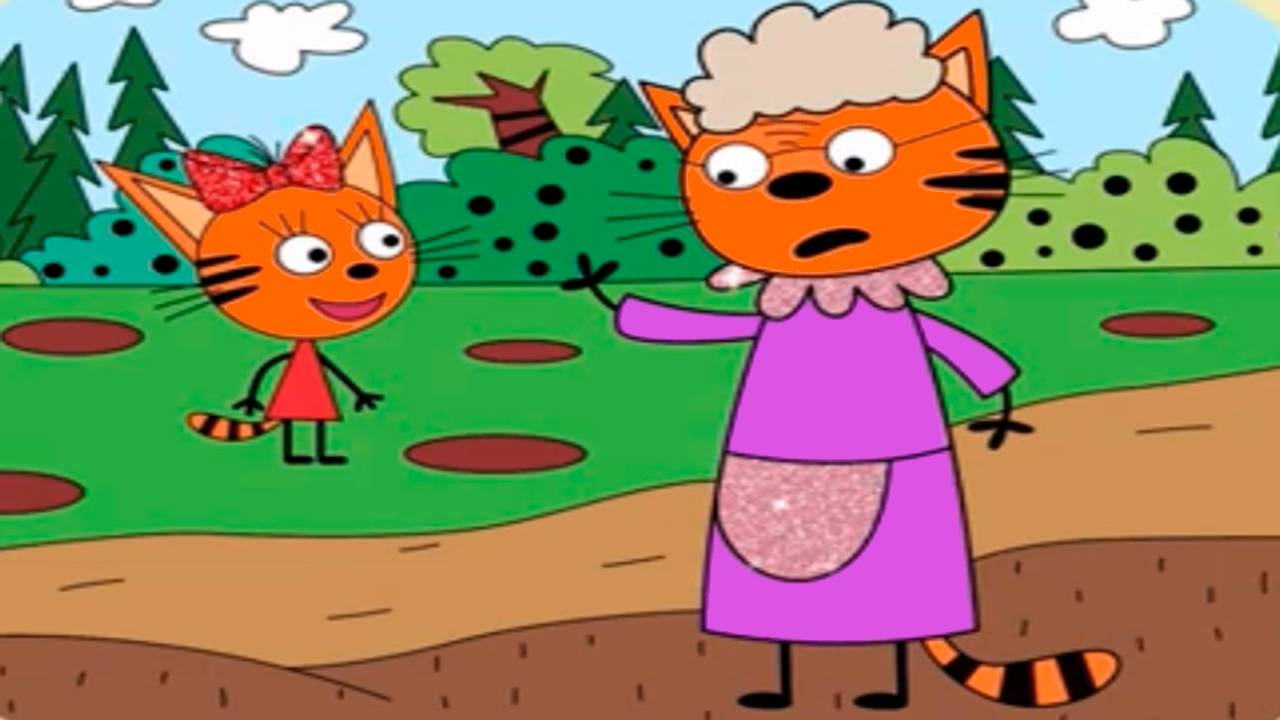Три кота - Карамелька и Бабушка Раскраска - Три кота Карамелька и Бабушка Изольда