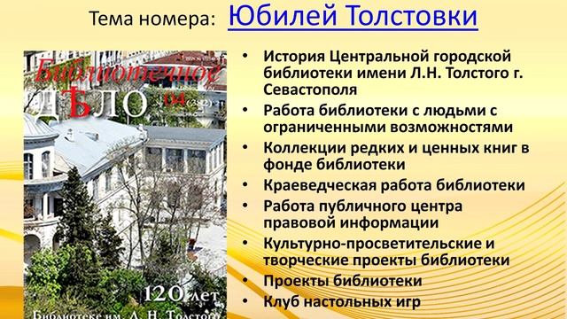 Обзор журналов "Библиотечное дело" за 2021 год. ЦГБ