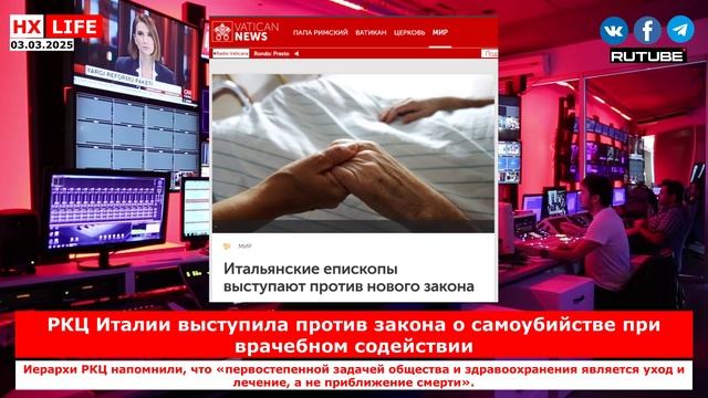 НХ-LIFE: РКЦ Италии выступила против закона о самоубийстве при врачебном содействии