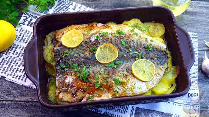 Скумбрия, запечённая с картофелем и чесноком - ароматное и вкусное блюдо, которое сочетает в себе сочность рыбы и мягкость картофеля. Лёгкая цитрусовая кислинка лимона, чесночные нотки и аромат кориандра создают насыщенный выразительный вкус. Продукты (на 3 порции) Скумбрия свежая или размороженная - 500 г Картофель - 530 г Лук - 130 г Чеснок - 2 зубчика Лимон - 100 г (1 шт. для 15-30 мл сока и 3-4 лимонных дольки) Кориандр молотый - 1 ч. ложка с горкой Чеснок сушеный молотый - 0,5 ч. ложки Масло растительное - 40 мл Соль - 1,6 ч. ложки Перец черный молотый - 0,4 ч. ложки Зелень петрушки - 5 г #СкумбрияСКартошкой #СкумбрияСЧесноком #СкумбрияЗапечённая #СкумбрияВДуховке