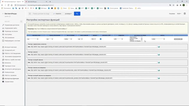 Веб-АвтоРесурс. Функции экспорта в системе