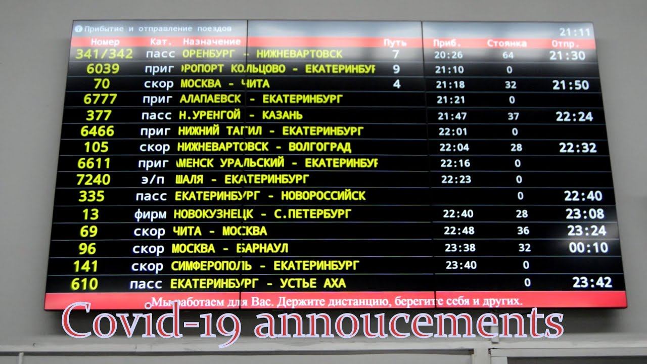 Sound annoucements at Ekaterinburg-Passazhirsky train station. 4.08.2020. Please see photos - Смотрите фото: Сибириана - Sibiriana 2020 https://www.flickr.com/photos/ekatmoped/albums/72157716668009003