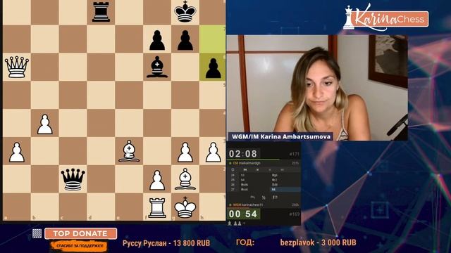 3-х часовая Арена по 3 минуты против титулованных шахматистов. Поддержать канал: https://www.donationalerts.com/r/karinachess1 Подписаться на мой канал: https://www.youtube.com/channel/UChor8u_hhgrjX2lt0QLzZHA?sub_confirmation=1 Рестрим: https://www.twitch.tv/karinachess1 Рада приветствовать Вас на канале женского международного гроссмейстера, международного мастера Карины Амбарцумовой! Я - профессиональная шахматистка и тренер. Здесь вы сможете найти обучающие видеоуроки по шахматам, комментарии турниров, стримы моей игры в блиц шахматы. Подписывайтесь на мои странички в соц.сетях: ВКонтакте: https://vk.com/karinachessclub Twitch: https://www.twitch.tv/karinachess1 Почта для связи: karinachess@mail.ru Мой сайт: http://chesscoach.ru/ #шахматы #КаринаАмбарцумова #стримшахмат #шахматыблиц