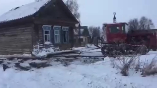Трактор увёз за собой избу в связи с переездом. #дом #трактор #уехал #переезд