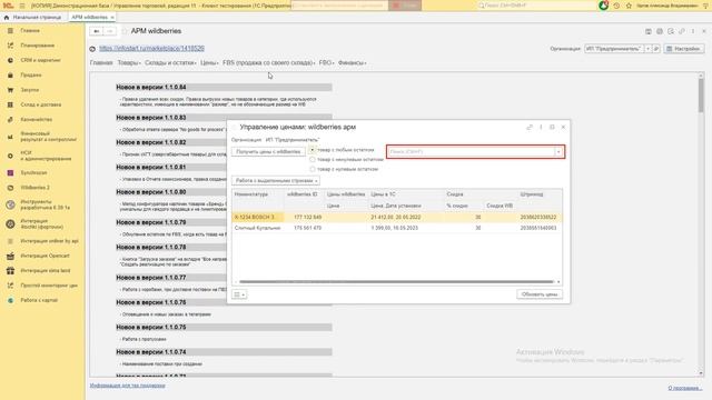 Ручное управление ценами WB из 1C