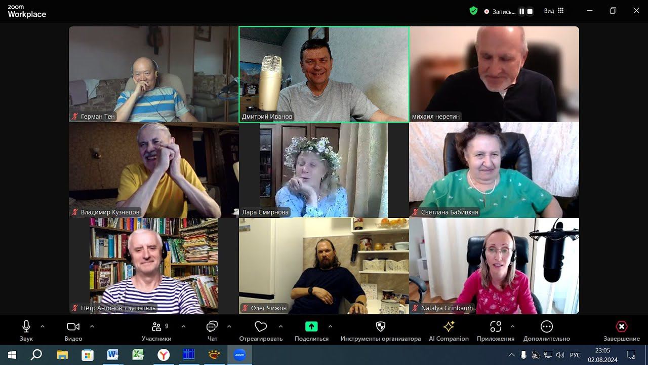 Тема вечера: "Разноцветье, разнотравье" 0:00:00 Вступление 0:01:04 Олег Чижов 0:08:30 Владимир Кузнецов 0:18:06 Светлана Бабицкая 0:24:41 Герман Тен 0:33:05 Лариса Смирнова 0:41:03 Пётр Антонов 0:48:46 Михаил Неретин 0:51:59 Дмитрий Иванов 0:59:07 "Оладушки" 1:02:57 Олег Чижов 1:09:09 Владимир Кузнецов 1:16:14 Светлана Бабицкая 1:21:09 Герман Тен 1:29:18 Лариса Смирнова 1:38:22 Пётр Антонов 1:45:05 Михаил Неретин 1:52:47 Наталья Гринбаум 2:00:36 Дмитрий Иванов