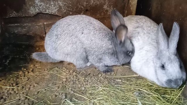 Кролики полтавское серебро. Самка знакомится с самцом.