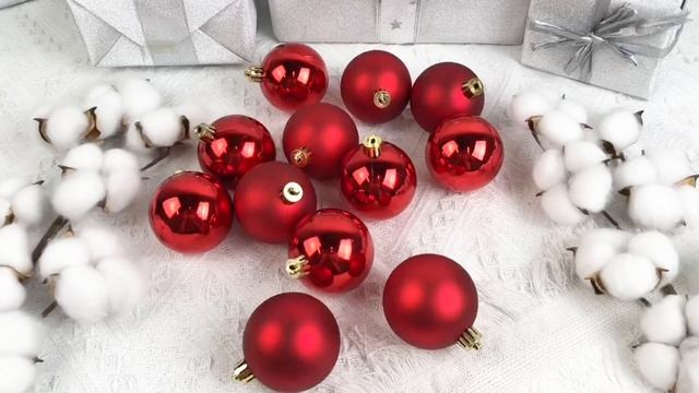 Набор однотонных пластиковых шаров глянцевых и матовых, цвет: красный, 60 мм, 021832