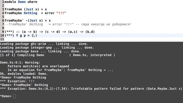 Haskell для начинающих - #93 урок. Ленивые образцы