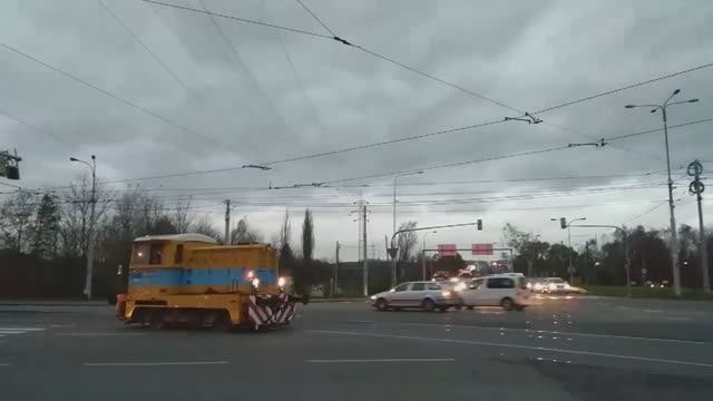 Локомотив едет по улице в центре города!!
