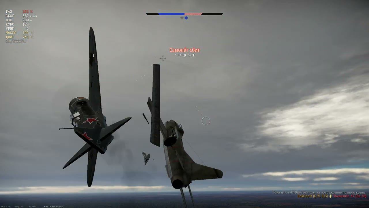 Каким-то чудом успел довернуть крылья и глупо не умереть от тушки уже подбитого вражеского самолета