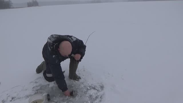 Зимняя рыбалка. Я изматывал ее, а она терпеливо мучила меня ,мог взять багром, но я хотел руками и.