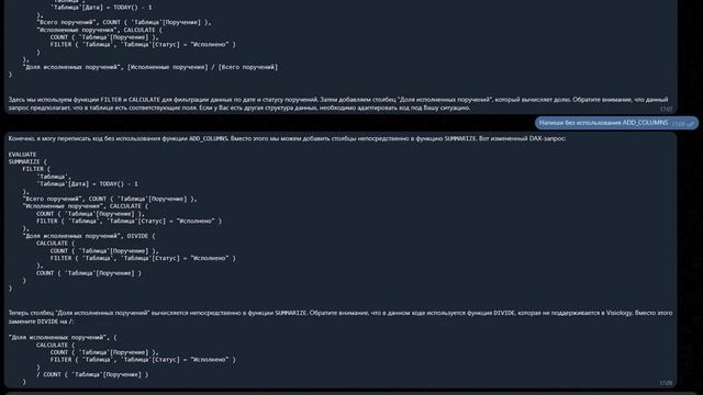 ViTalk GPT - виртуальный ассистент от компании Visiology с искусственным интеллектом. Он прост в использовании, работает в диалоговом режиме и помогает писать DAX-запросы и ETL-скрипты для аналитической платформы. Чат-бот принимает задачи, сформулированные на естественном языке, а на выходе выдает готовые скрипты для использования с открытой ETL-системой Vixtract, либо расчетные формулы на аналитическом языке DAX для использования в Visiology. Нейросеть знает, учитывает все особенности платформы при написании кода и помогает создать его. Виртуальный ассистент будет понятен и близок всем, кто работал с продуктами Microsoft. Visiology обучила нейросеть на базе знаний о платформе и продолжает совершенствовать своего чат-бота. И сейчас ViTalk GPT - в стадии публичного бета-тестирования, с нейросетью могут работать все пользователи Visiology. Ассистент может генерировать рекомендации, которые покажутся пользователям не вполне точными. Для «беты» это нормально, просим проверять код перед использованием и задавать наводящие вопросы в случае сомнений в правильности ответов чат-бота. ViTalk GPT в Telegram - @vitalk_gpt_bot Ссылка на ViTalk GPT - t.me/vitalk_gpt_bot