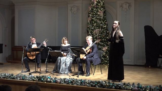 Хоакин Родриго "Adela" из цикла 12 испанских песен Исп. Татьяна Швед Класс народной артистки России, профессора Московской консерватории Лидии Алексеевны Черных и Московское гитарное трио: Дмитрий Бородаев Виктория Налетова Вячеслав Шугаев Фрагмент "Новогоднего вечера с гитарой" Рахманиновский зал Московской консерватории, 04.01.2025г.