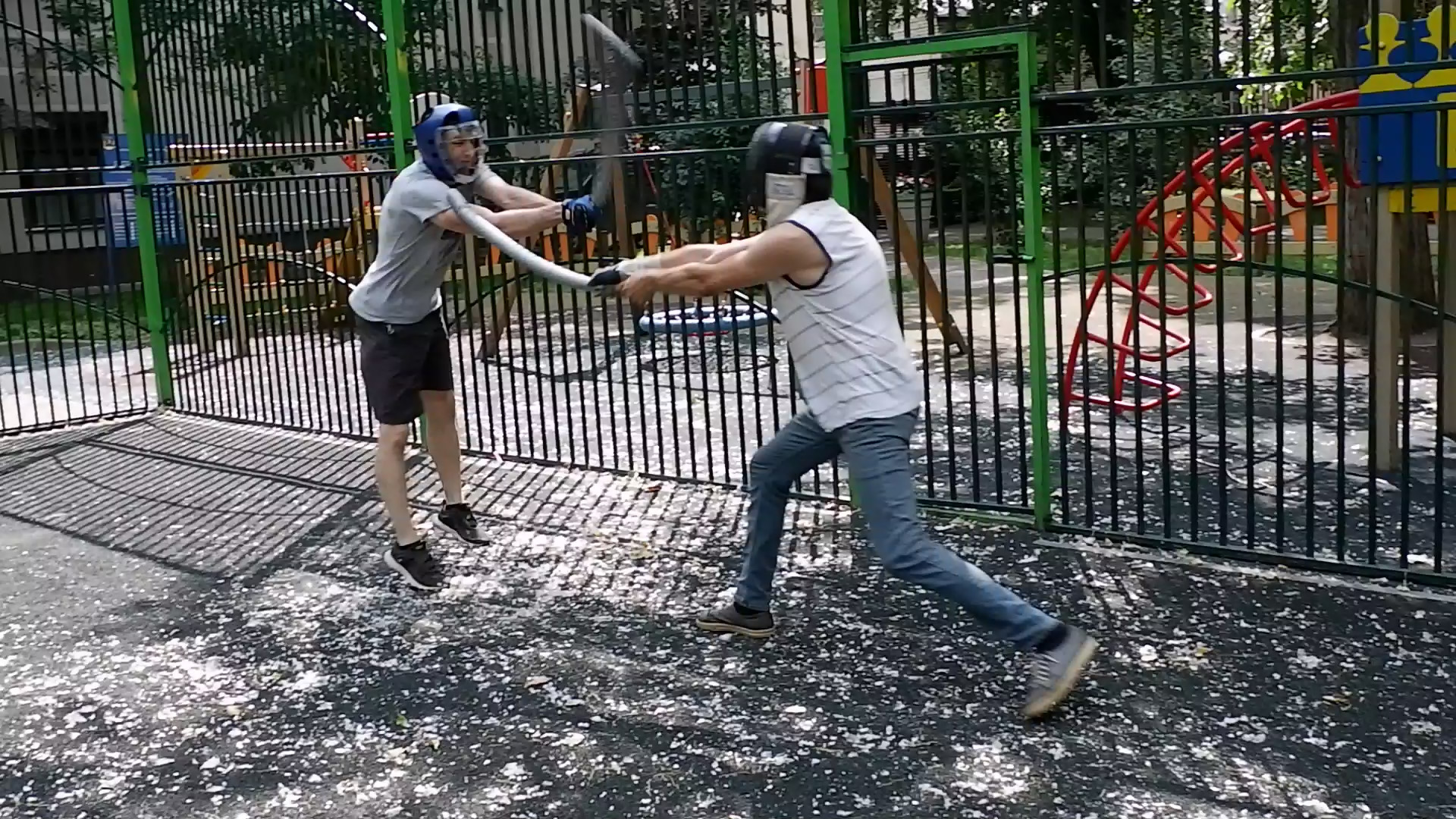 Урок фехтования катаной обучение кендзюцу спарринг на длинных мечах на улице