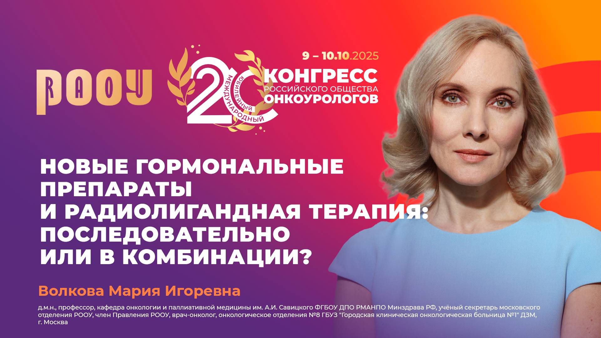 9 октября на XX Международном Конгрессе РООУ Волкова Мария Игоревна представила доклад на тему: "Новые гормональные препараты и радиолигандная терапия: последовательно или в комбинации?" ✅ Эксперт: Волкова Мария Игоревна, д.м.н., профессор, кафедра онкологии и паллиативной медицины им. А.И. Савицкого ФГБОУ ДПО РМАНПО Минздрава РФ, учёный секретарь московского отделения РООУ, член Правления РООУ, врач-онколог, онкологическое отделения №8 ГБУЗ "Городская клиническая онкологическая больница №1" ДЗМ, г. Москва. ➡️ Официальный сайт РООУ: https://roou.ru/ Присоединяйтесь к нам в социальных сетях. Делитесь мнением и повышайте уровень теоретической и практической подготовки в онкоурологии: Telegram: https://t.me/oncologyurology ВКонтакте: https://vk.com/oncologyurology #РООУ #RAOU #ОбществоОнкоурологов #Онкоурология #Урология #Онкология #Oncourology #XVКонгрессРООУ #КонгрессРООУ #ракпочки #медицинскиеконференции #urology