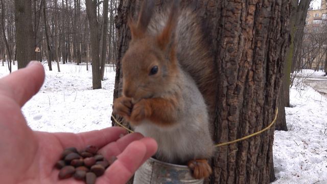 Повесил кормушки. Зарисовка с молодыми белками