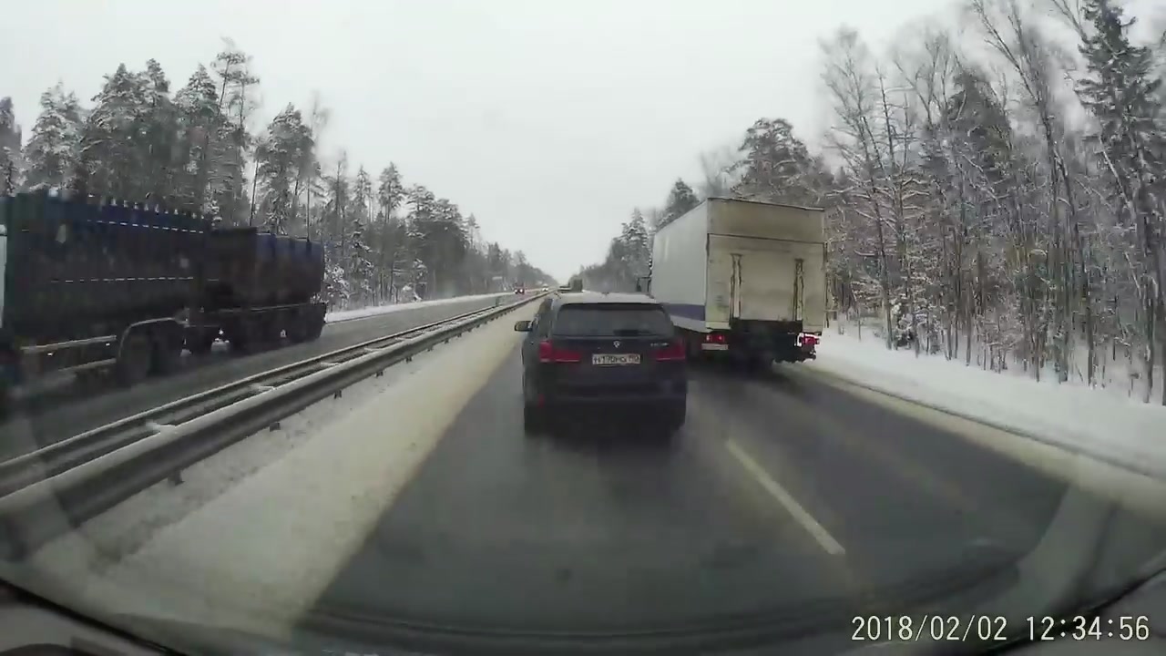 ДТП Горьковское шоссе 73 км. 2.02.18. Водитель иномарки при обгоне подрезал грузовик, который вылетел в кювет. #дтп #авария #подрезал #кювет #грузовик