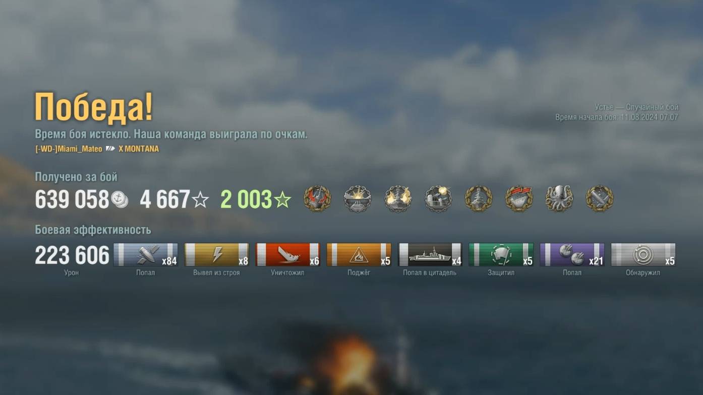 Линкор X Montana : +223к урона 6 фрагов на карте Устье - World of Warships