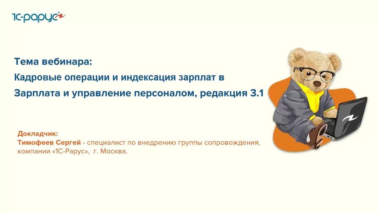 Запись вебинара от 28 апреля 2022 года на тему "Кадровые операции и индексация зарплат в «1С:Зарплата и управление персоналом 8»". Программа вебинара: Заполнение данных на начало эксплуатации. Ввод и изменение штатной расстановки. Отражение кадровых переводов. Совмещение должностей и подработки. Индексация зарплат в программе.