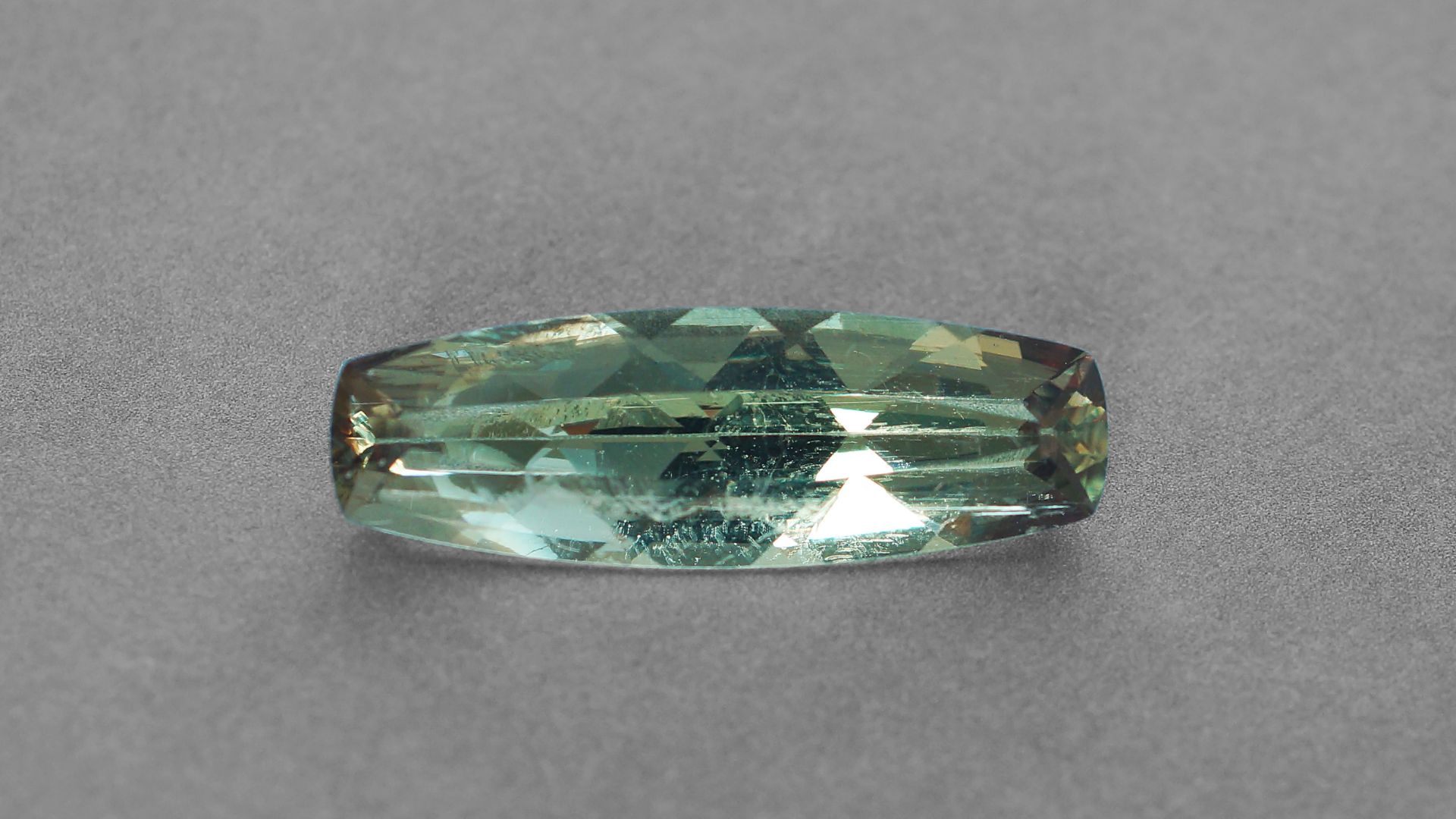 0001DP Наименование: Натуральный Диаспор. Вес: 8.90 кт. Размеры: 25.12 х 8.36 х 5.70 мм. Огранка: Фантазийная. Чистота: Умеренные включения. Цвет: Оливково - Зеленый - Красный. Тип: Диаспор. Облагораживание: Отсутствует. Месторождение: Турция.