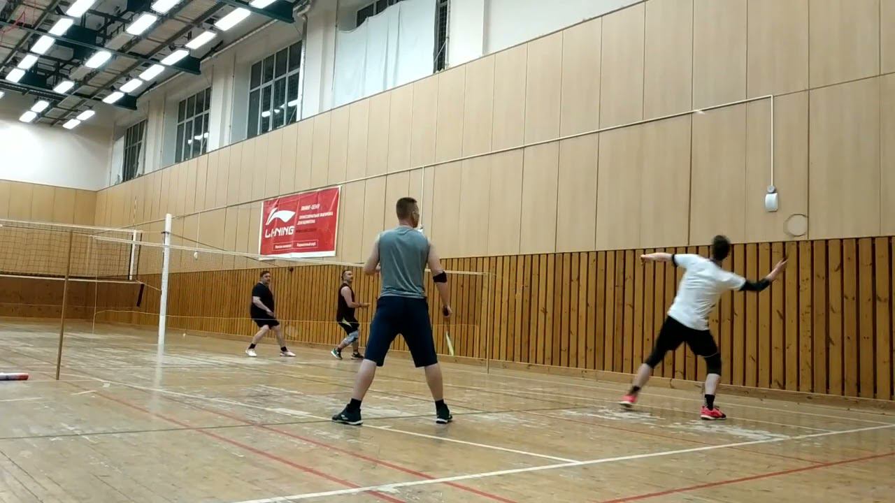 Тренировочная игра в бадминтон через сетку. Играют любители, новички и опытные бадминтонисты. Игра в Лестехе (МГУЛ ранее, сейчас называется филиалом Бауманки). Хочешь тоже играть? Приходи - https://badminton77.ru/map/4/ #badminton #badmintonlovers #badmintonrussia #lesteh #ЛесТех #бадминтон