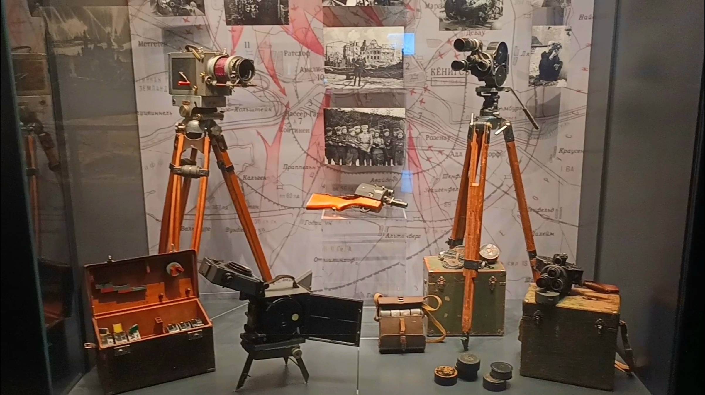 Представлены уникальные фотографии и кинохроника весны 1945 года из архивов девяти российских музеев. Среди экспонатов: подлинная киноаппаратура периода войны (включая кинопулемет Медведкина), монтажные листы операторов, реконструкция полевой проявочной лаборатории.