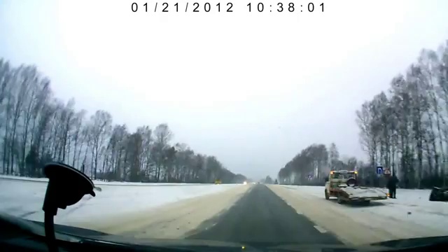 Потеря управления на скользкой дороге (повезло)