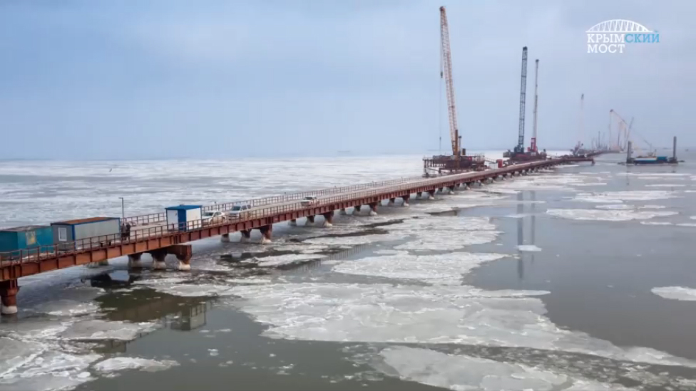 Возведение Крымского моста продолжается в ледоход