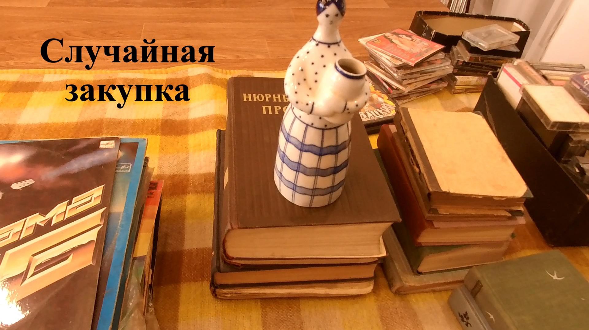 Статуэтка, книги, аудиокассеты, виниловые пластинки
