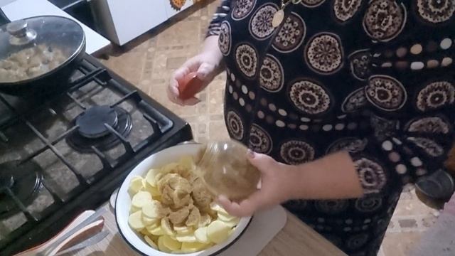 Жарю картофель на сале. Готовлю салат с капусты.