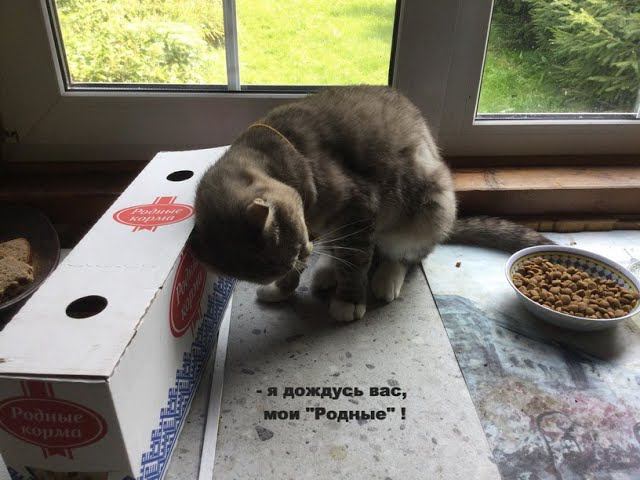 Коты ждут особый завтрак - мясные кусочки в соусе.